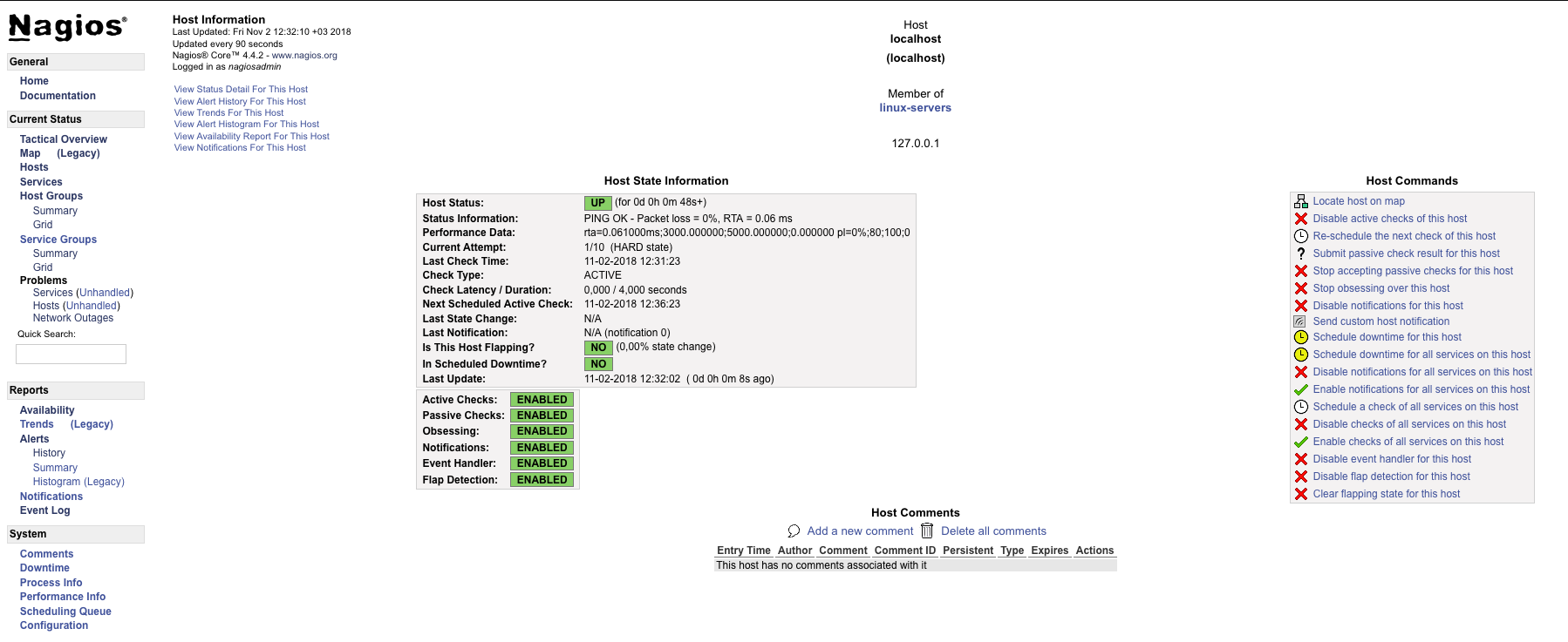 Artık Nagios Core hazır durumda http://localhost/nagios giderek erişim sağlayabilirsiniz.