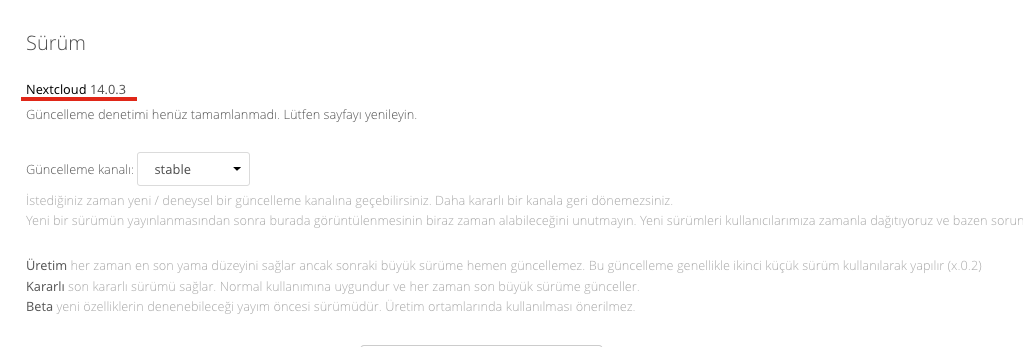 - Nextcloud versiyon yükselmek için aşağıdaki adımları yapmamız yeterli olacaktır.